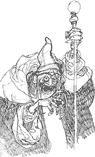 Incluso los adornos de los ropajes del personaje son objeto de un atento estudio por parte del autor, que antes de decantarse por una determinada greca estudia diferentes alternativas.